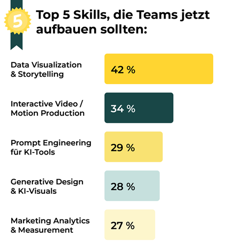 42 % der Teams sehen Datenvisualisierung und Storytelling als wichtigste Fähigkeit der nächsten Jahre – vor KI-Prompts, Motion Design und Analytics.